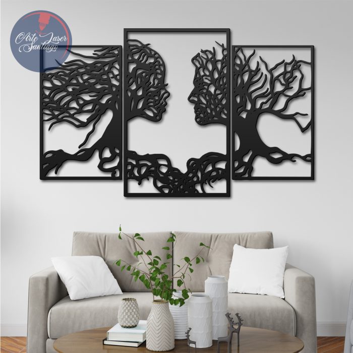 Triptico Cuadro de árbol con forma de personas en madera MDF de 3 MM